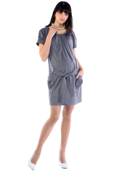 Платье из тонкой мягкой эластичной костюмной ткани в тонкую клетку. Объём регулируется поясом-хлястиком под животиком.На рукавах-фонариках пуговки-стразы. Рекомендуем носить как самостоятельно, так и с водолазками и блузками. Удачно смотрится во время беременности и отлично маскирует недостатки фигуры после родов, не придавая ей излишнего объёма. Здорово смотрится и без животика.