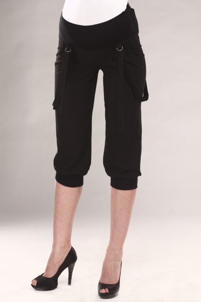 Озорные капри-бермуды выполнены из тонкой стрейчевой костюмной ткани. Пояс-бандаж "под живот" регулируется передвижной резинкой. Мягкие трикотажные манжеты удобно облегают ногу. Модный элемент - оригинальные лямки-подтяжки. Великолепно сидят на фигуре как на любом сроке беременности, так и в обычной "небеременной" жизни.